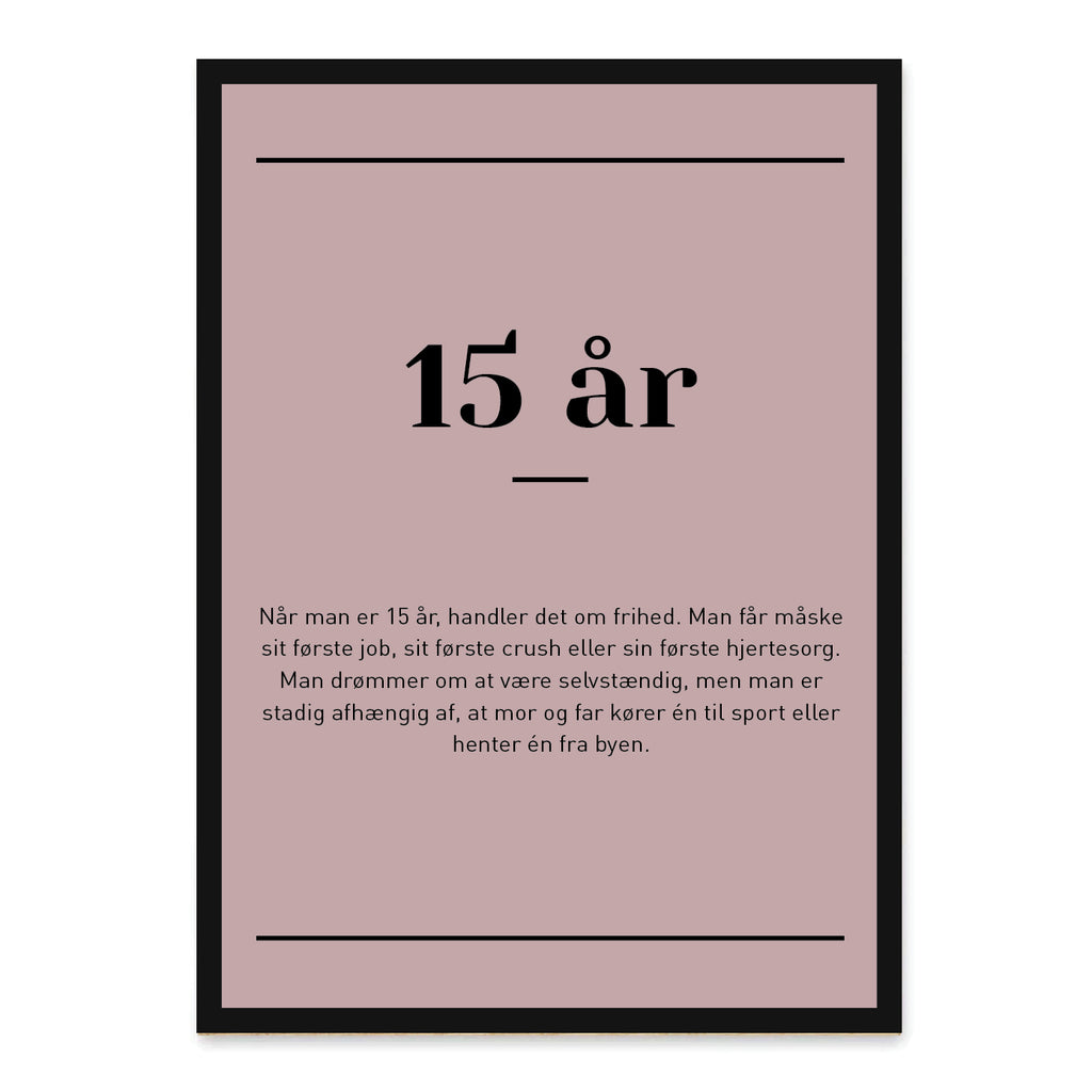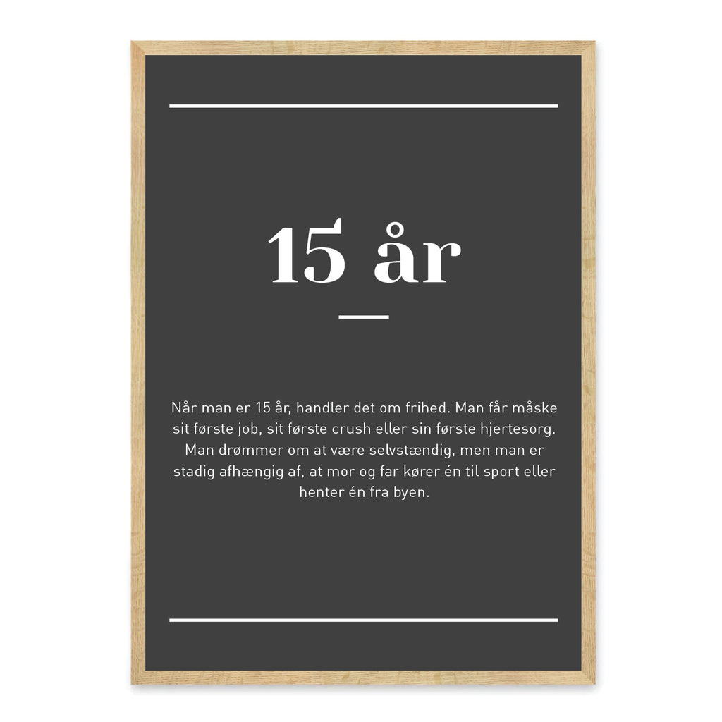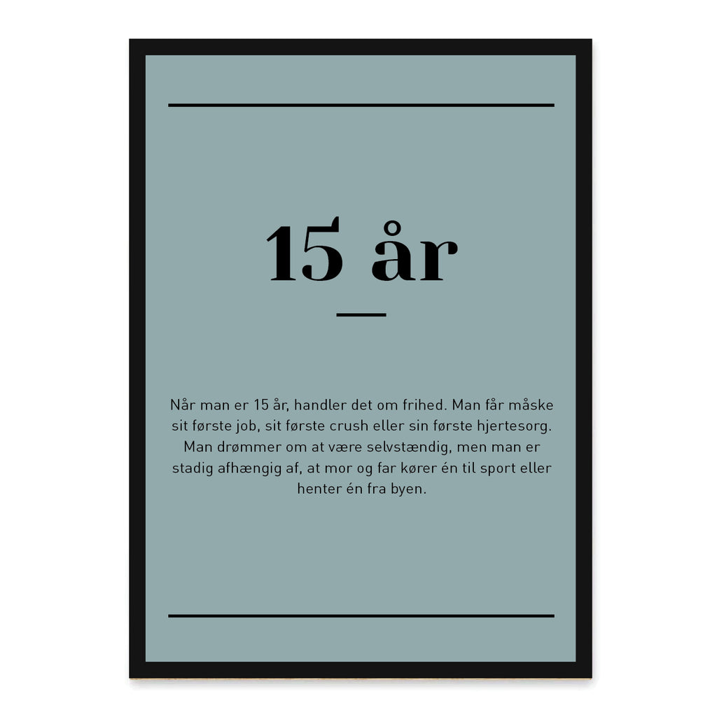 En oplagt gave til 15-års fødselsdagen eller som personlig og inspirerende dekoration på teenageværelset. Med sit enkle og moderne design passer plakaten perfekt ind i ethvert hjem.