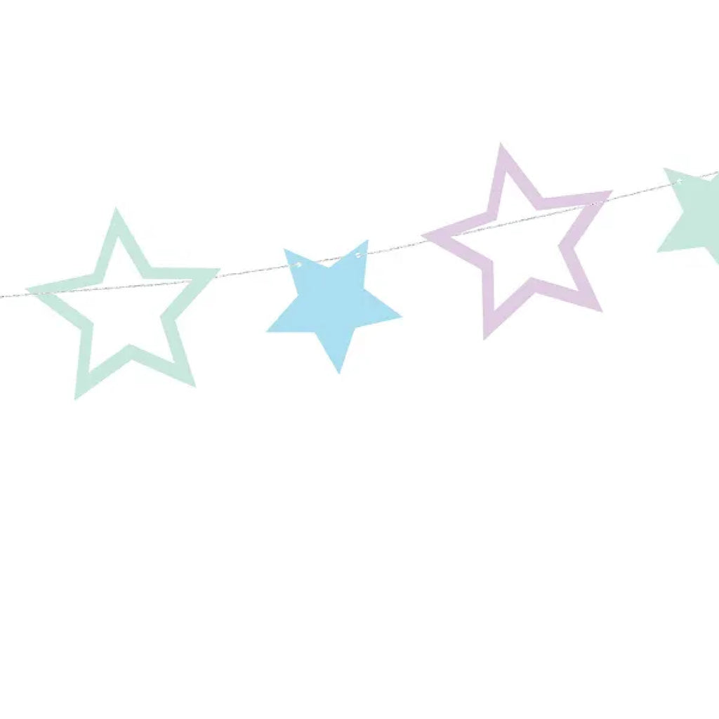 Sød DIY-guirlande med stjerner i et flot mix af farver – perfekt som dekoration til børnefødselsdag, temafest eller til at pynte børneværelset.