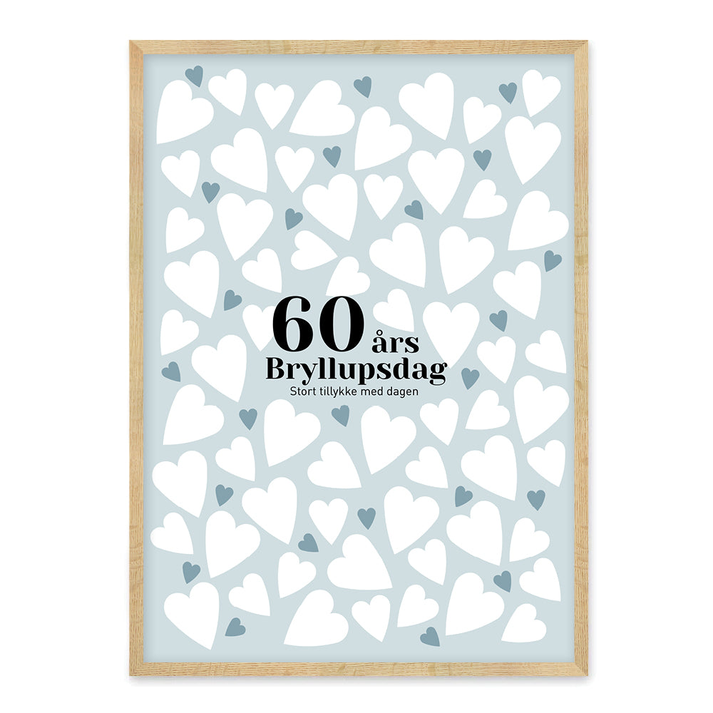 Rubinbrylluppet markerer 40 års kærlighed – en stærk og passioneret fejring. Med en gæsteplakat kan jubilæet huskes på en kreativ måde. Gæsterne kan skrive hilsner i hjerterne, som bliver en del af en unik og personlig plakat. I vælger selv farver, antal hjerter og kan tilføje jeres egen tekst. Et varigt minde om en stor dag fyldt med kærlighed og nærvær.