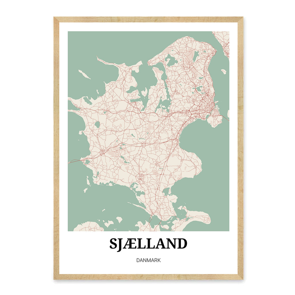 Giv dit hjem et nostalgisk touch med dette vintage bykort over Sjælland. Designet kombinerer klassiske nuancer og et tidløst layout, der emmer af charme og historie. Perfekt til dig, der elsker retro-stil og ønsker en dekorativ plakat, der skaber varme og personlighed i rummet. Vil du sætte dit eget præg på designet? Du kan nemt designe din egen byplakat, hvor du kan vælge farver og layout, så plakaten passer perfekt til din stil.
