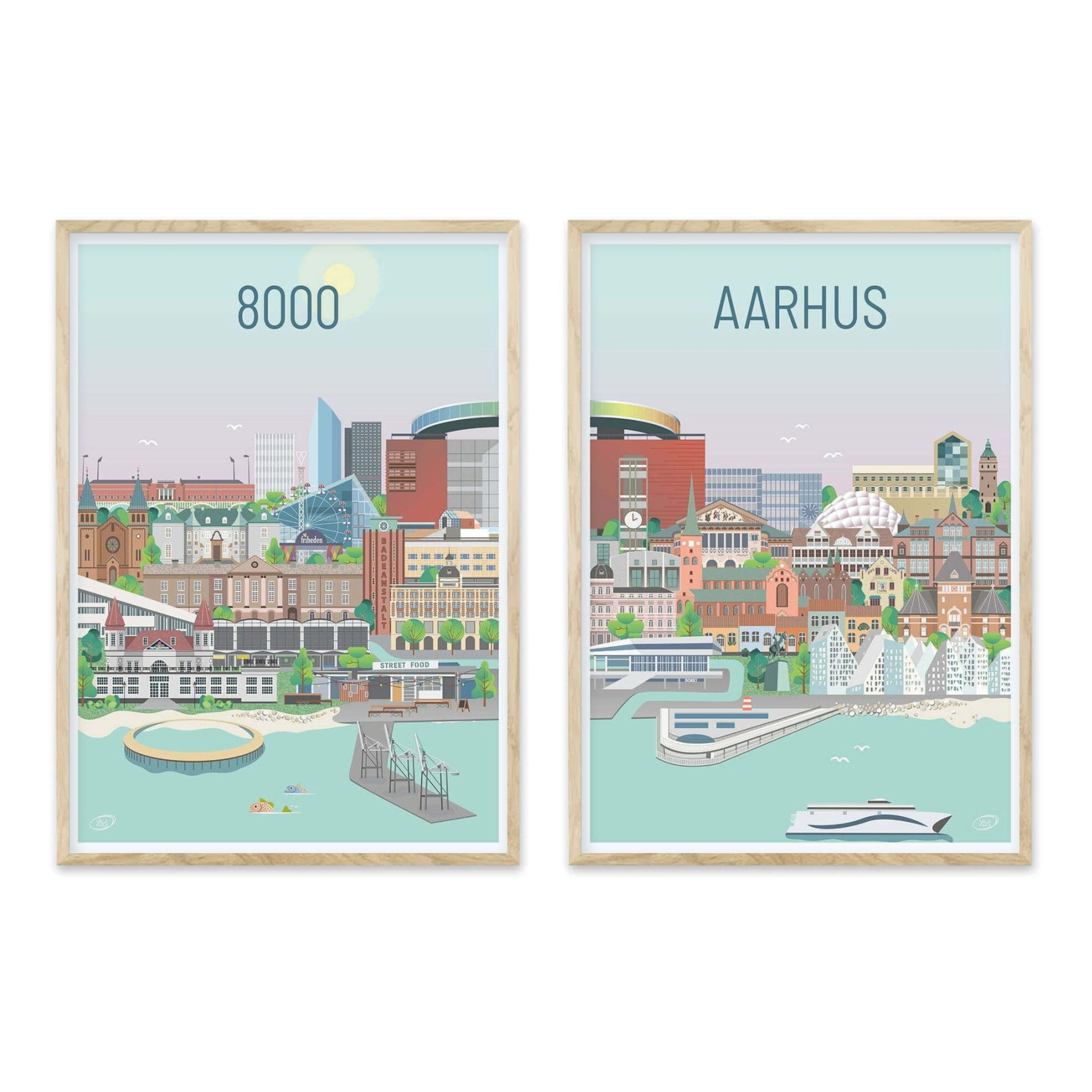 Her får du en sampak med to flotte Aarhus plakater fra Vialkula. Plakaterne er designet så de passer sammen side om side. Du kan selv vælge størrelsen på de to plakater.
