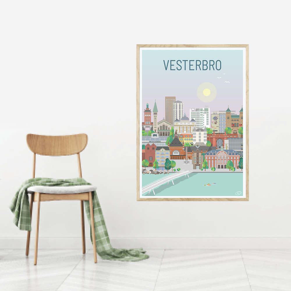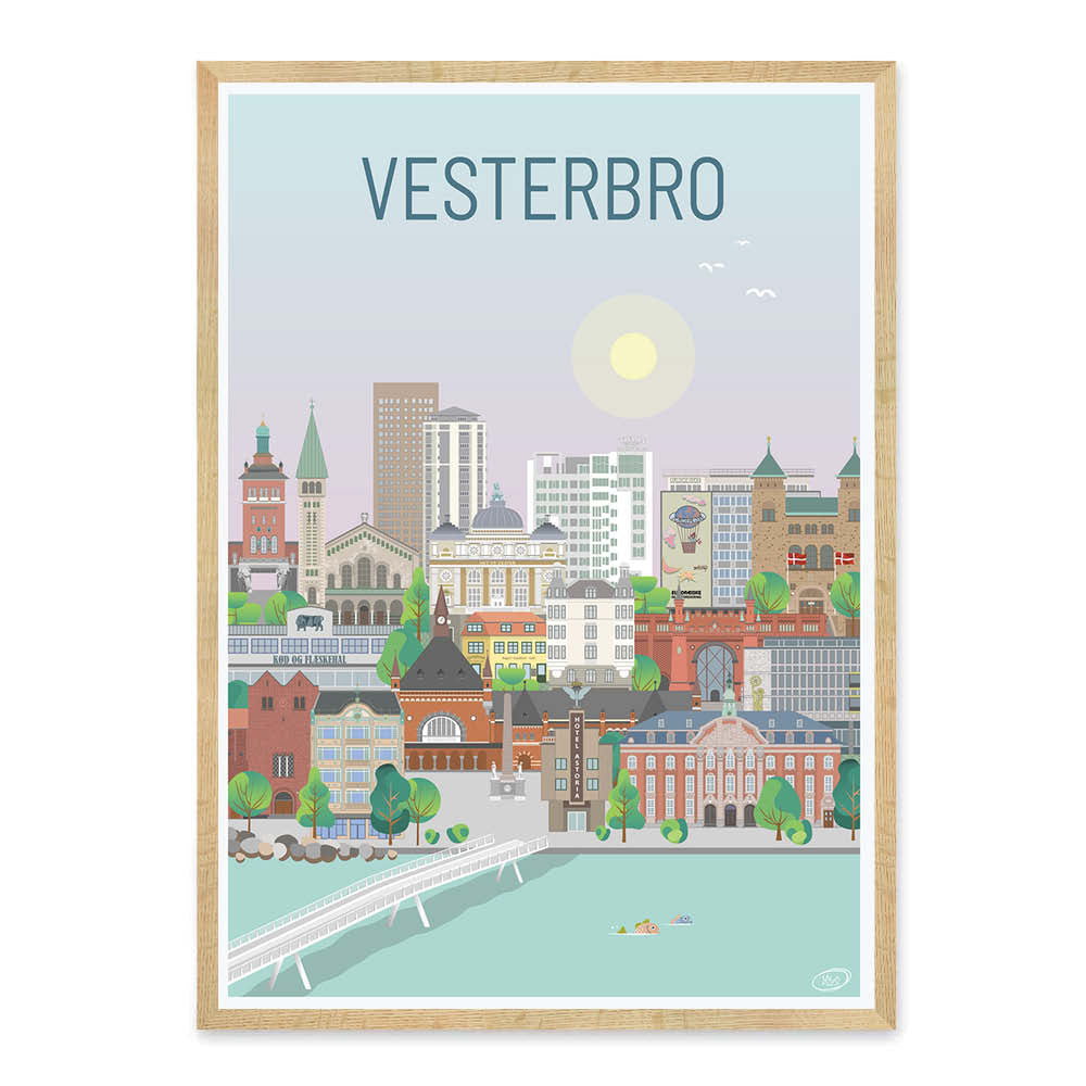 En smuk og detaljeret byplakat udarbejdet af Vilakula med motiv af skønne Vesterbro. Her har de fanget byens stemning samt flere af byens flotte bygningsværker. Den smukke Vesterbro plakat er designet i et farverigt univers der vil pynte smukt på væggene i ethvert hjem, og skaber en kontrast til de sort/hvide hjem.